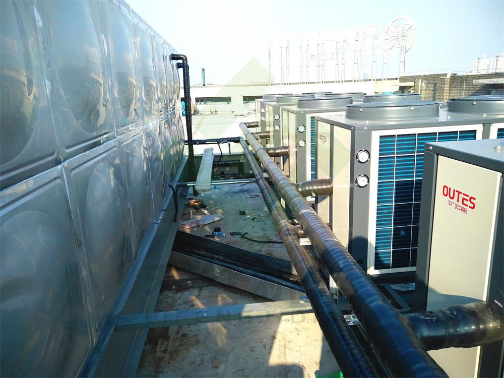 学校宿舍的房间数量多,热水点也多,这就让热水管道更长,让热水从水箱流动到热水口的过程中散失了部分热量,让热水的水温不够高。宿舍空气能热水工程可以针对管道过长导致冷却的现象在机组上加一个回水装置,通过这个装置,冷却的水可以被再次加热并重新释放回热水管道中,这样的作用是可以让学生每次打开水龙头都立刻有热水出水,而不是先出冷水导致浪费。
